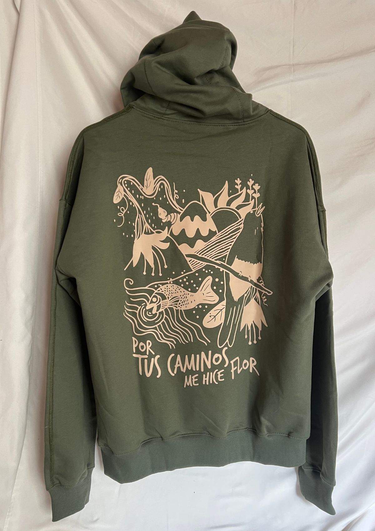 Nuestros Hoddies Por tus caminos me hice flor  son una prenda fresca y cómoda con estampado en serigrafía inspirado en la belleza natural tejida en algodón 100% su diseño celebra lo simple lo suave y lo auténtico cada flor impresa a mano convierte esta pieza en un jardín que se lleva puesto